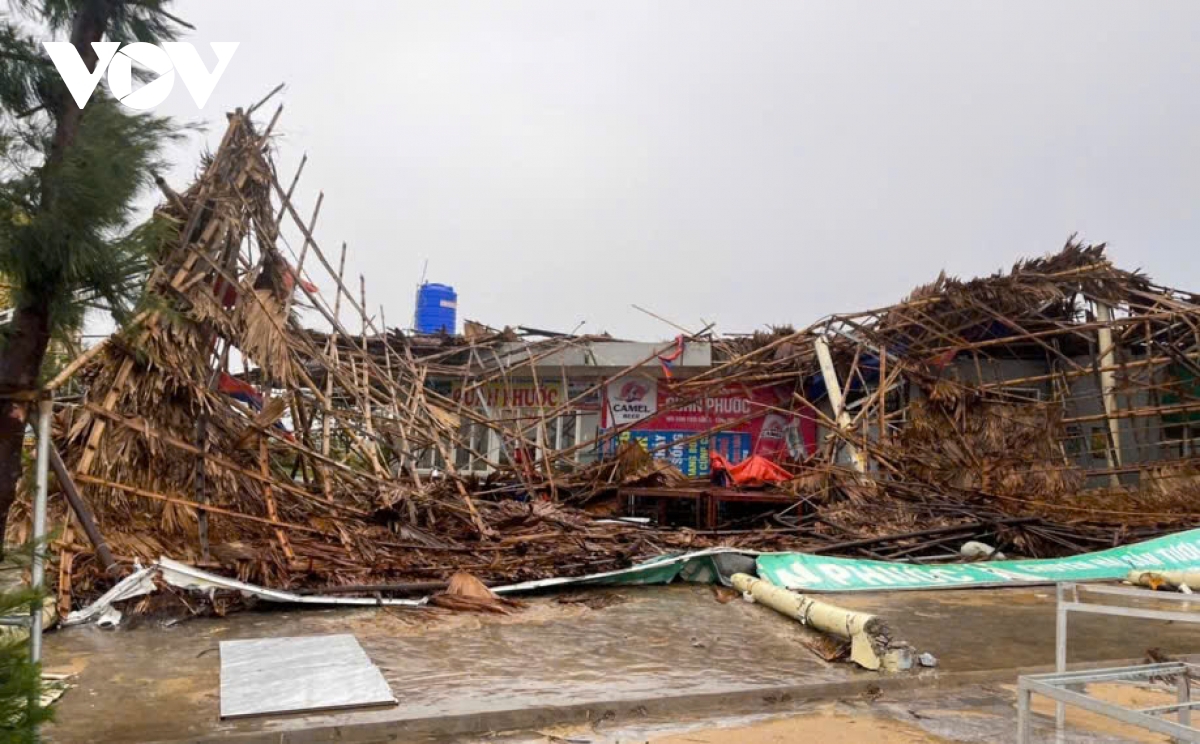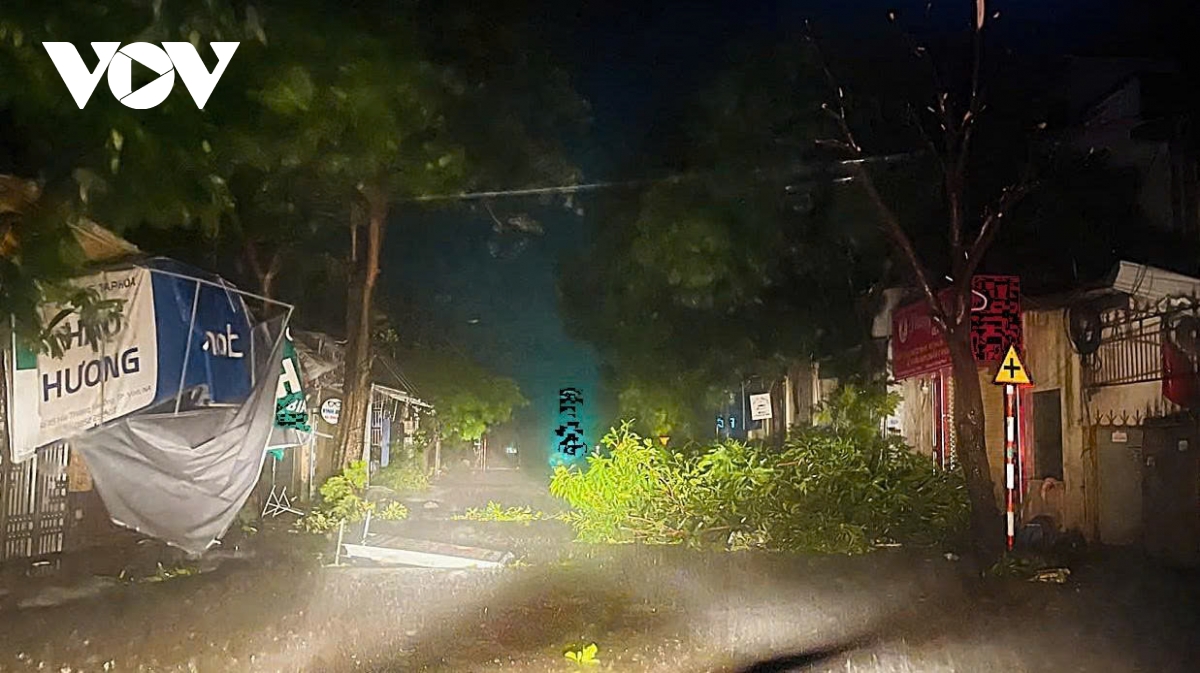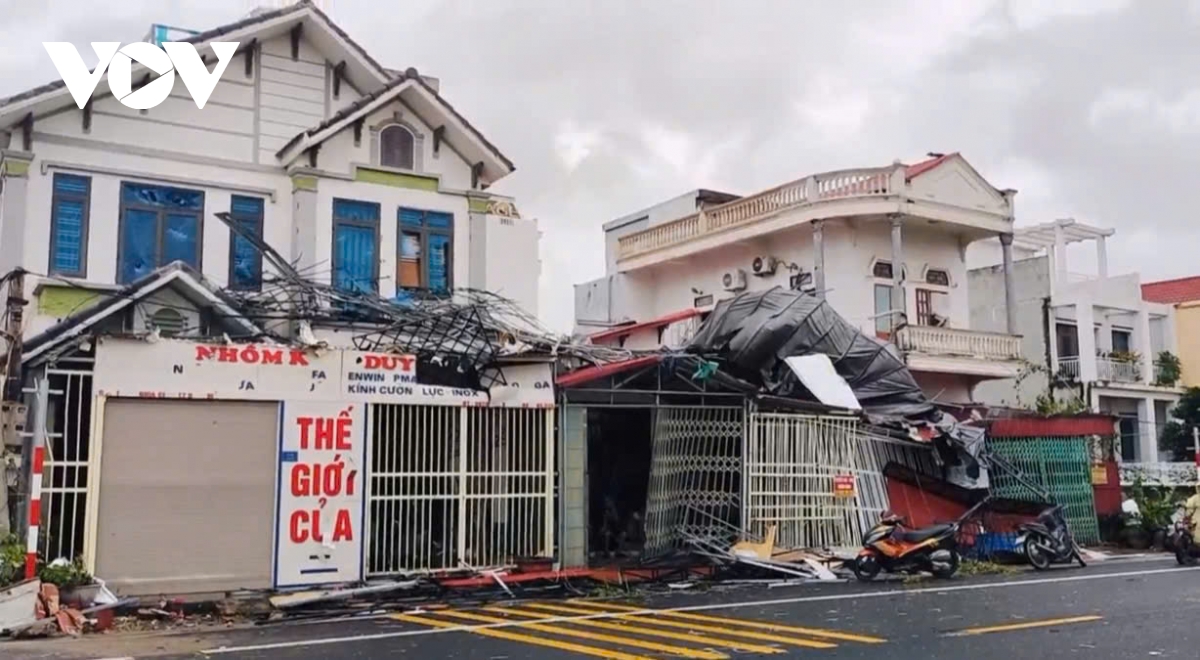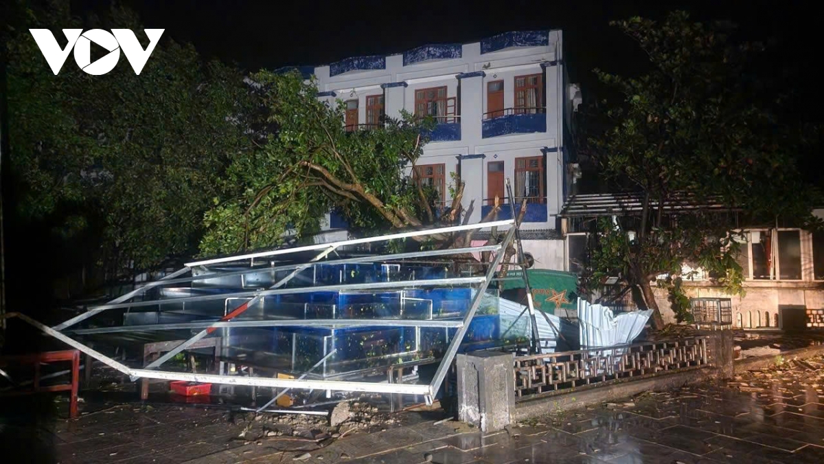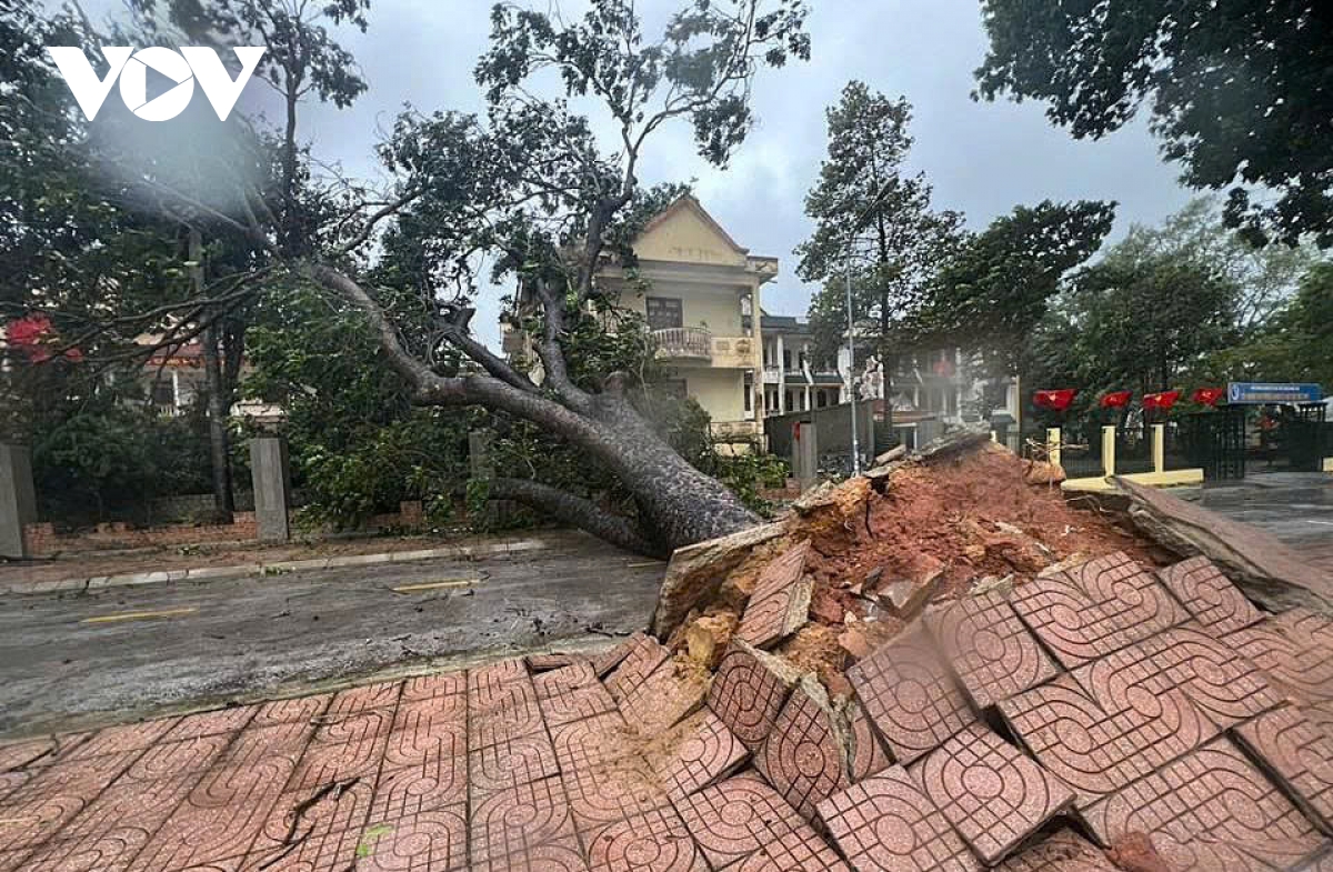 PV Thanh Hiếu-VOV miền Trung thông tin: Bão số 10 quét qua địa bàn tỉnh Quảng Trị làm nhiều cây xanh gãy đổ, nhiều nhà dân bị tốc mái, đổ sập, gây mất điện trên diện rộng.