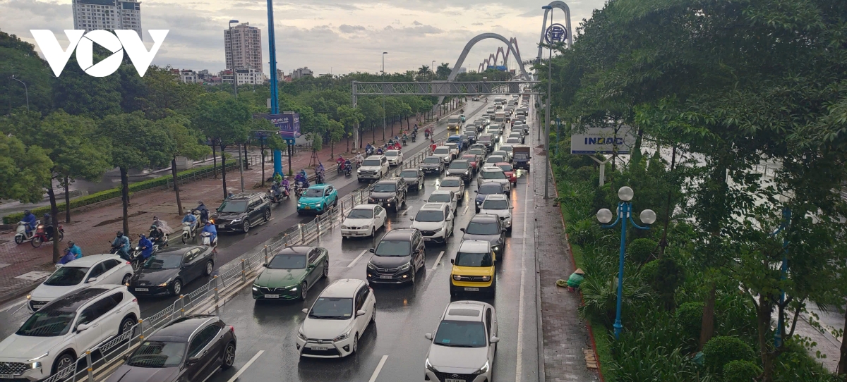 PV Sỹ Thành/VOV.VN tại Hà Nội thông tin: Do ảnh hưởng của bão số 10, Hà Nội có mưa lớn rải rác. Trên đường Võ Chí Công, khu vực đầu cầu Nhật Tân, lưu lượng ô tô đổ về trung tâm tăng cao. Dù đường không ngập và trời không mưa quá lớn, nhưng giao thông vẫn rơi vào tình trạng ùn tắc nghiêm trọng, kéo dài gần 2km từ ngã tư Nguyễn Hoàng Tôn đến chân cầu Nhật Tân.