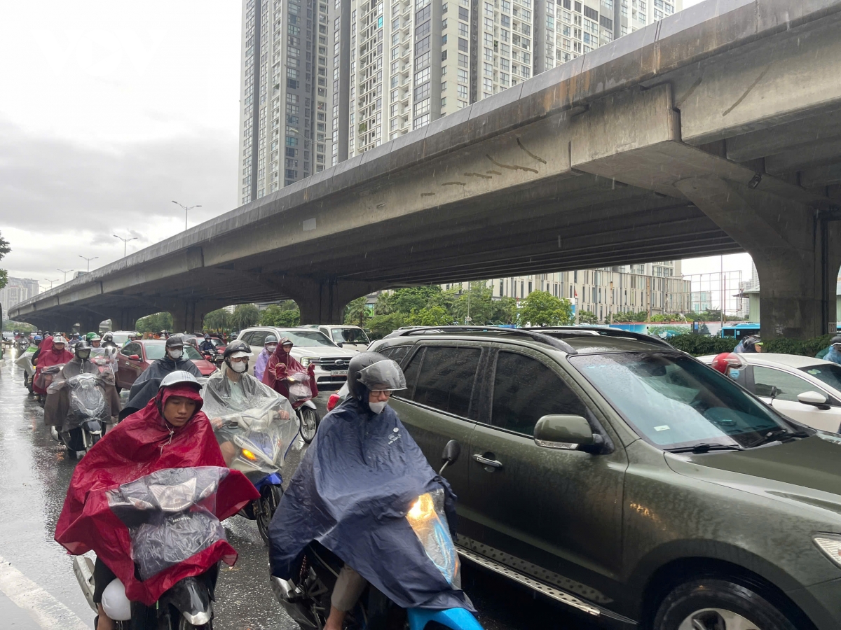 Ghi nhận trên các tuyến Phạm Hùng, Nguyễn Xiển, tình trạng ùn ứ nhẹ đã xảy ra do tầm nhìn bị hạn chế và đường trơn trượt. Gió lớn khiến việc điều khiển phương tiện trở nên khó khăn, đặc biệt là đối với xe máy. Người dân tham gia giao thông phải di chuyển chậm và thận trọng để đảm bảo an toàn trong điều kiện thời tiết xấu.