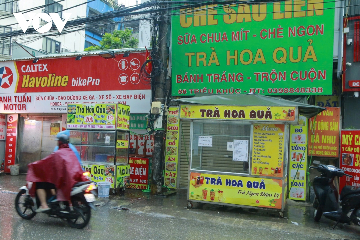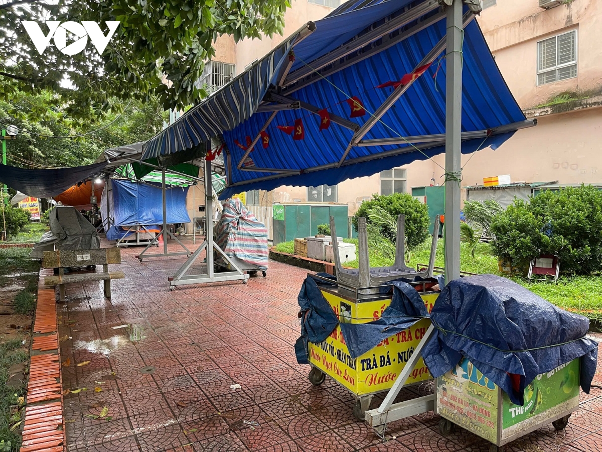 PV Linh Thương/VOV.VN thông tin: Ghi nhận của phóng viên tại các tuyến phố Đinh Núp, Nguyễn Chánh (Cầu Giấy) và Triều Khúc (Thanh Xuân), nhiều hàng quán rơi vào cảnh vắng khách, thậm chí không ít quán vỉa hè phải tạm đóng cửa. Trên vỉa hè, bàn ghế được xếp gọn, không còn cảnh tấp nập người ngồi ăn uống như thường ngày, thay vào đó là không khí đìu hiu, vắng lặng.