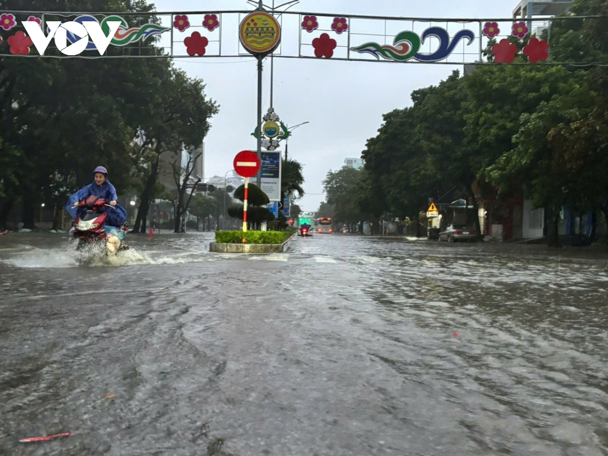 Ghi nhận của PV Lê Hải/VOV.VN tại Thanh Hoá, do ảnh hưởng của cơn bão số 10, từ đêm 28/9 cho tới sáng 29/9, trên địa bàn tỉnh Thanh Hoá có gió mạnh, mưa lớn kéo dài dẫn đến nhiều tuyến phố đã bị ngập úng, gây khó khăn cho người dân tham gia giao thông.