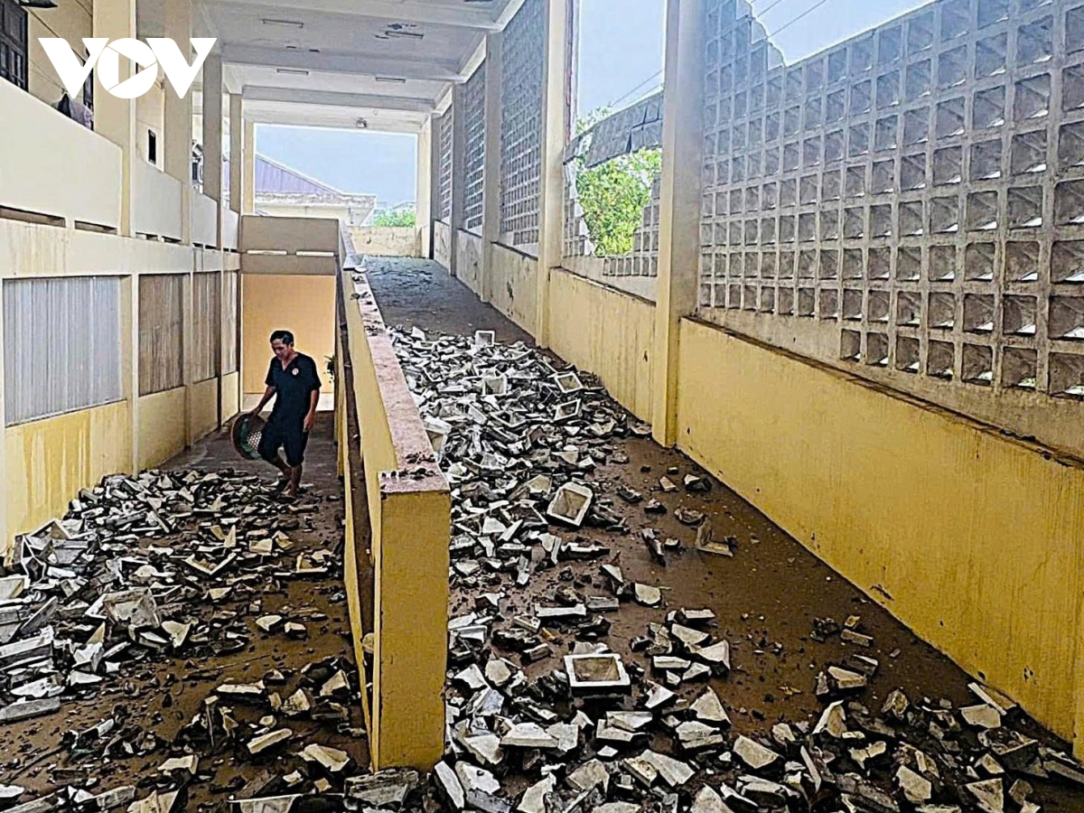 Tại phường Hải Ninh, nhiều nhà dân bị tốc mái, hư hỏng. Hiện công tác khắc phục đang được triển khai khẩn trương. Lực lượng công an, quân đội cùng chính quyền được huy động xuống dân khắc phục hậu quả.