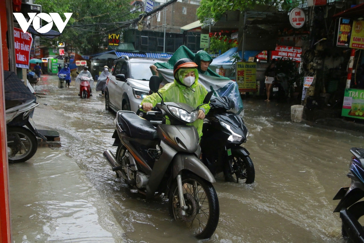 Hàng loạt phương tiện xe máy phải bì bõm vượt qua dòng nước, nhiều người đi đường phải mặc áo mưa, co chân để tránh ướt. Theo ghi nhận, dù chưa đến mức ngập sâu nhưng tình trạng này khiến giao thông qua khu vực bị ảnh hưởng rõ rệt, nhất là khi học sinh, sinh viên và nhân viên văn phòng quay trở lại làm việc sau giờ nghỉ trưa.