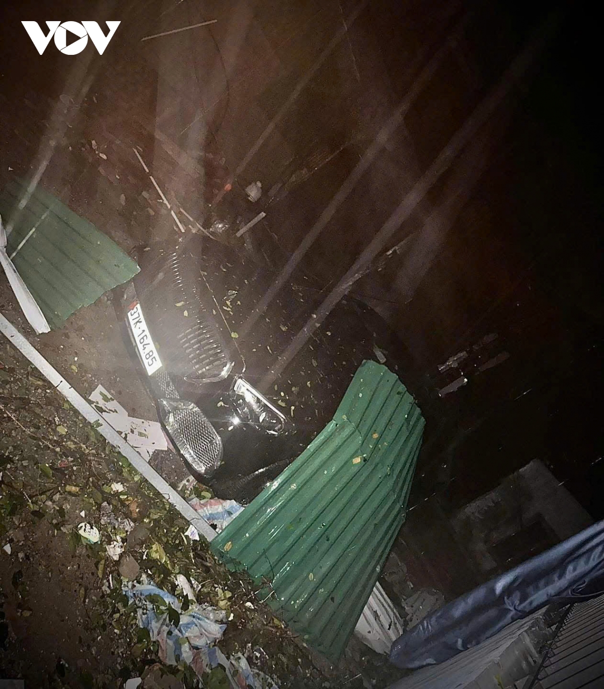 Cây xanh gãy đổ la liệt, mái tôn nhà dân rơi xuống đường