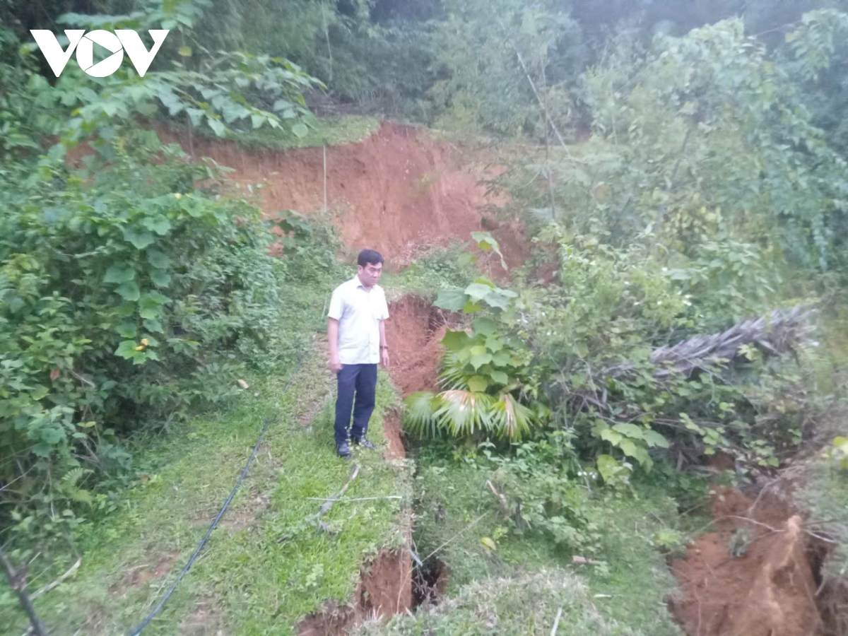 PV Sỹ Đức/VOV1 tại Thanh Hoá thông tin, do ảnh hưởng của mưa bão, tại bản Cháo Pi, xã Văn Phú tỉnh Thanh Hóa xuất hiện sạt lở núi với vết nứt lớn. Chính quyền địa phương đã phải di dời các hộ dân sinh sống dưới chân núi đến nơi an toàn.