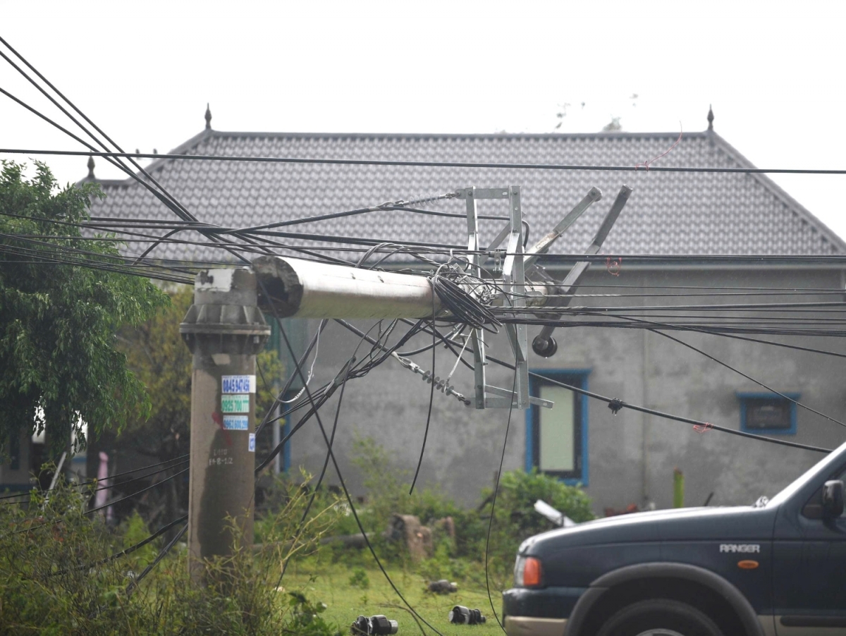 Bão số 10 làm gãy đổ hàng trăm cột điện tại tỉnh Quảng Trị