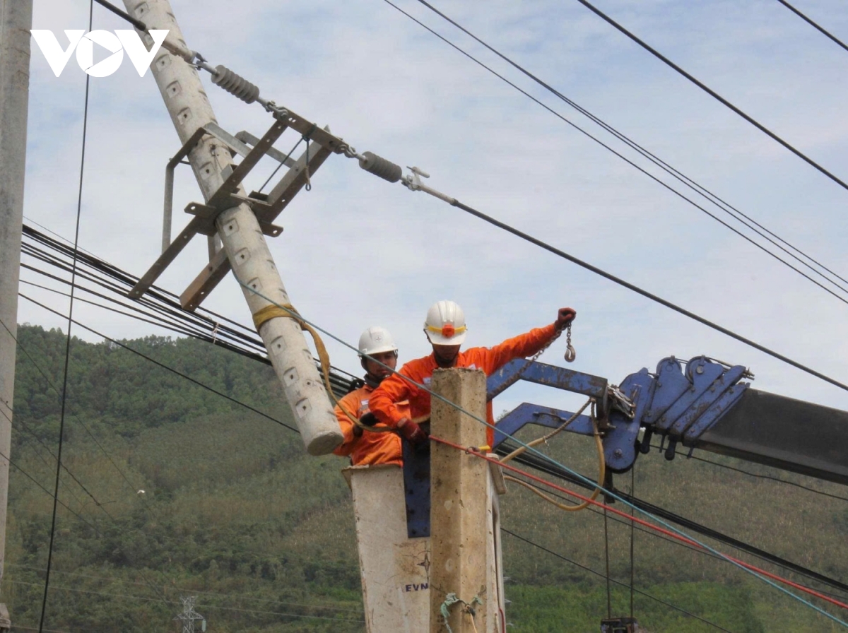 Công nhân ngành điện miền Trung làm việc xuyên trưa, nhanh chóng khắc phục sự cố điện