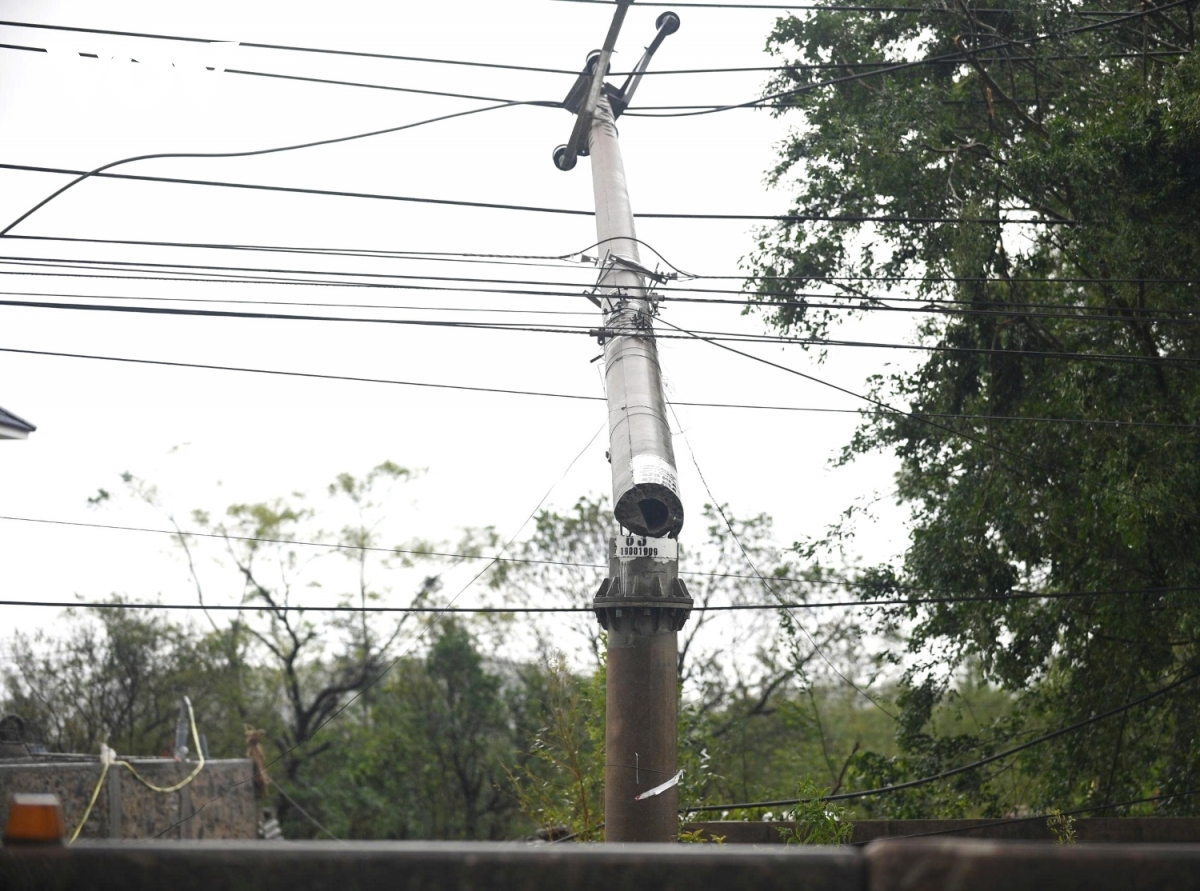 Cột điện bị gãy ngang do gió bão giật mạnh