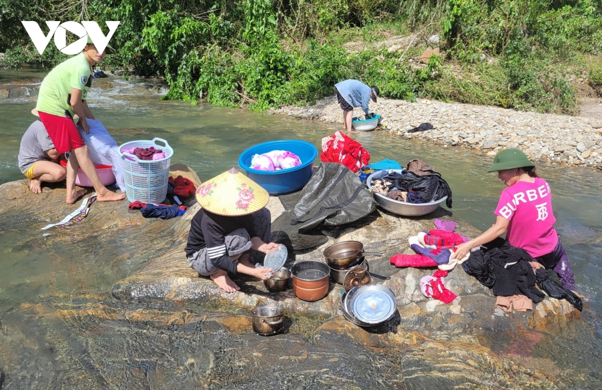 Người dân ra suối tắm giặt, lấy nước sinh hoạt trong thời gian chưa có điện