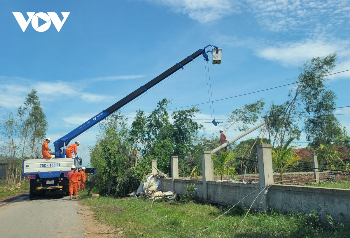 Tăng cường máy móc, nhân lực sớm khắc phục sự cố điện sau bão số 10