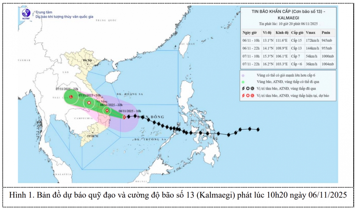Từ ngày 6-7/11, khu vực từ Đà Nẵng đến Đắk Lắk có mưa rất to với lượng mưa phổ biến 200-400mm, cục bộ trên 600mm/đợt. Các tỉnh Nam Quảng Trị, Thừa Thiên Huế, Khánh Hòa và Lâm Đồng có lượng mưa 150-300mm, nơi cao nhất có thể vượt 450mm.