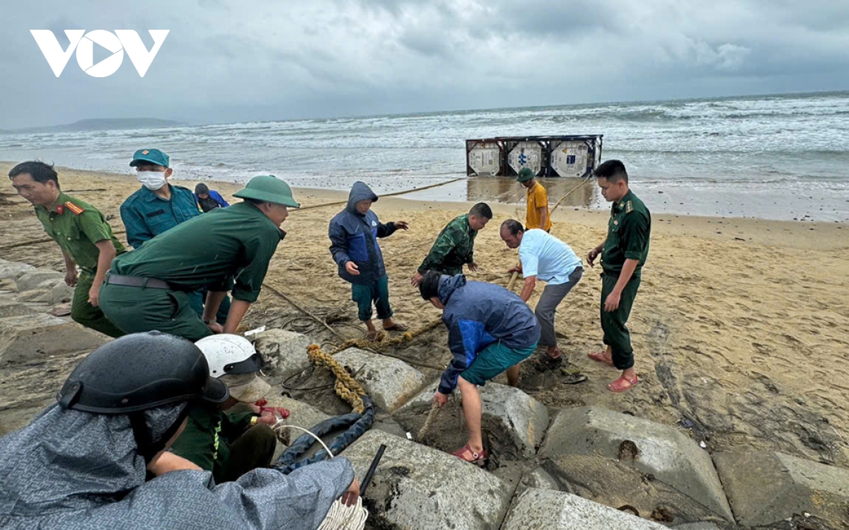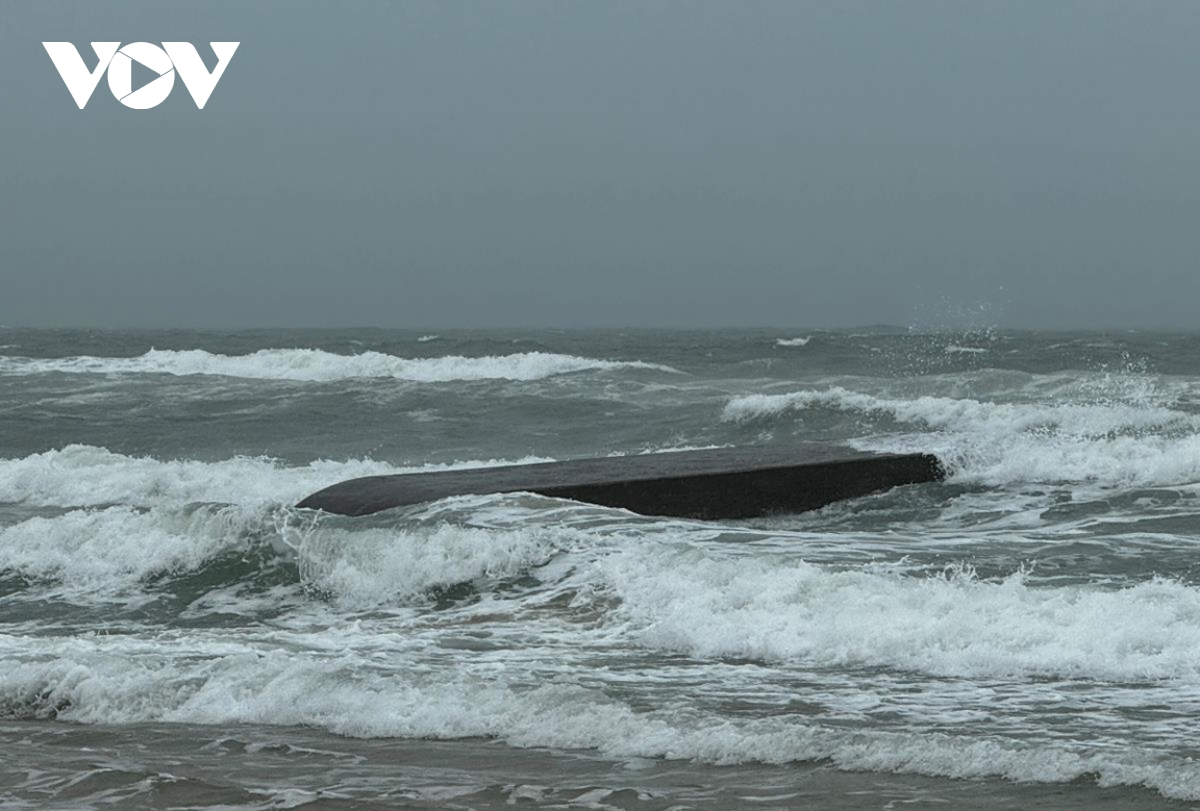Do biển động, sóng lớn nên Bộ đội Biên phòng và các lực lượng chức năng chưa thể tiếp cận, kiểm tra thực trạng xà lan trôi dạt.