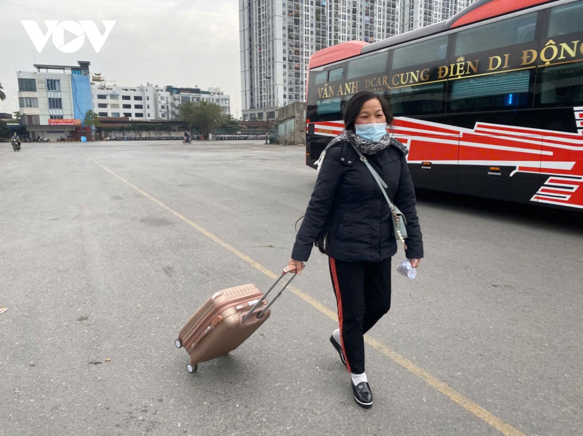 Một tay lỉnh kỉnh xách đồ đạc, một tay kéo va ly, bà Trần Thị Thanh Hoa ở Thanh Hoá cho biết, năm nay kỳ nghỉ Tết Nguyên đán kéo dài 9 ngày, lo ngại hết chỗ ngồi đẹp và sợ bị nhồi nhét nên bà dự định sẽ đặt vé về quê sớm nhưng do gia đình có việc đột xuất nên bà phải dời đến hôm nay 29 Tết-ngày cuối cùng của năm Giáp Thìn 2024 mới ra bến xe.