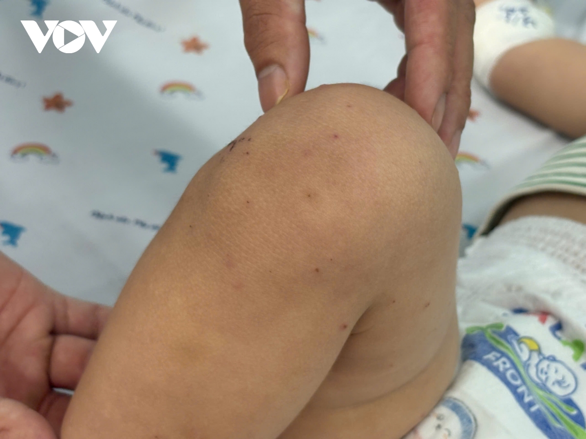 Chị Ngô Thị Nguyệt Anh, ngụ tỉnh Tây Ninh có con trai 10 tháng tuổi đang điều trị tại đây cho biết, bé nổi mụn nước ở đầu gối, sau đó lan ra khắp cơ thể. Tiếp đó, bé sốt cao lên tới 39 - 40 độ liên tục, dù uống thuốc nhưng không hạ. Gia đình có đưa bé đến cơ sở y tế tư nhân gần nhà điều trị 2 ngày nhưng tình trạng không thuyên giảm nên chuyển lên Bệnh viện Nhi Đồng 1.