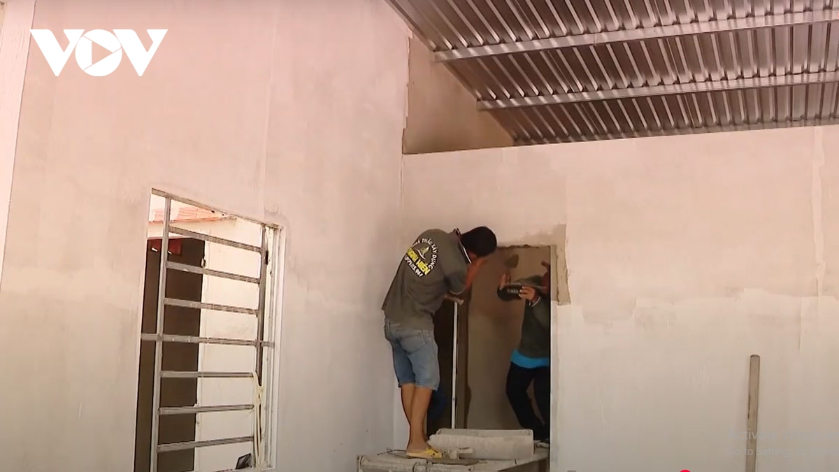 Tại xã Long Tân, huyện Dầu Tiếng, căn nhà cũ dột nát, xuống cấp từng là nơi ở của 6 thành viên trong gia đình anh Trần Văn Phúc đang được sửa chữa lại khang trang.