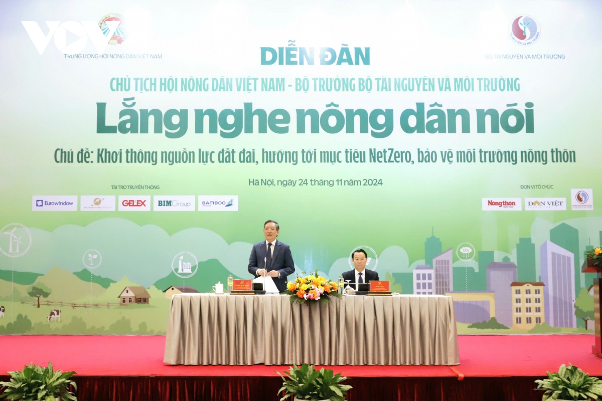 Với tinh thần khơi thông nguồn lực đất đai, chung tay cùng bà con nông dân kéo giảm phát thải khí nhà kính, hướng tới mục tiêu NetZero, bảo vệ môi trường nông thôn, tại diễn đàn, Bộ trưởng Bộ Tài nguyên và Môi trường Đỗ Đức Duy cùng với lãnh đạo các đơn vị trực thuộc đã trả lời, làm rõ các vướng mắc mà các đại biểu nông dân, hợp tác xã, doanh nghiệp trong lĩnh vực nông nghiệp phản ánh.