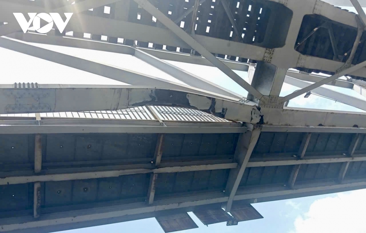 Cú va chạm mạnh khiến kết cấu dàn thép của cầu bị biến dạng cong vênh, nhiều bản nút bị ảnh hưởng, một số bu-lông gối cầu bị đứt, gối cầu xê dịch khoảng 25mm và tuyến ray trên cầu bị lệch khoảng 320mm. Sự cố cũng khiến một người đi xe máy trên lề bộ hành cầu bị thương.