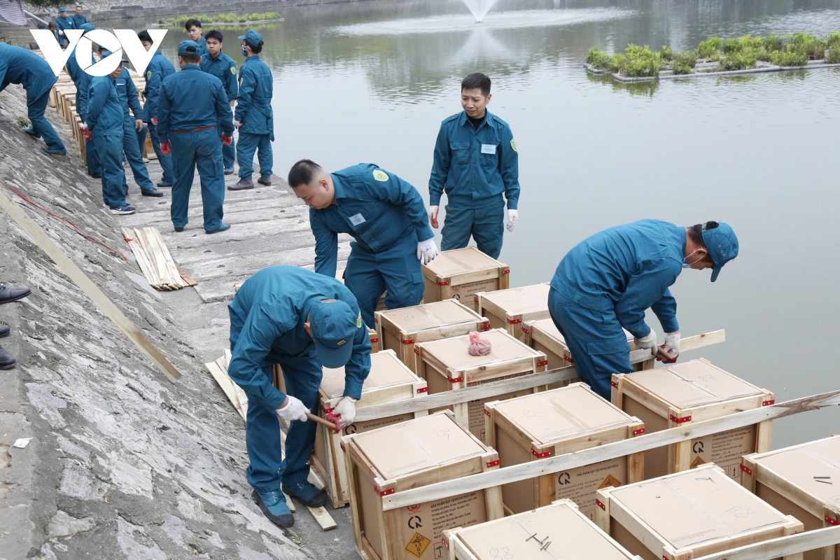 VOV.VN - Tất cả các trận địa pháo hoa tầm cao tại Thủ đô Hà Nội đã được lắp đặt hoàn thành và sẵn sàng khai hỏa để chào mừng năm mới 2025.