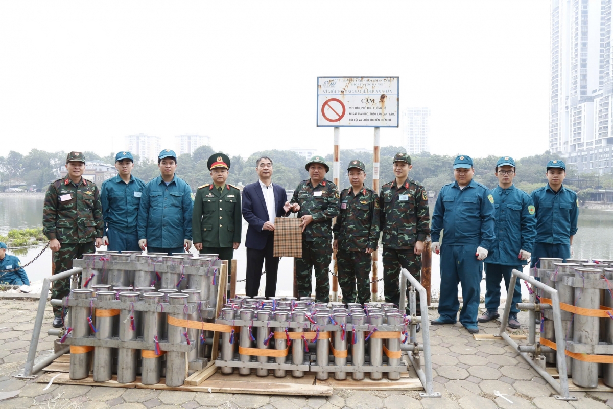 Thiếu tướng Đào Văn Nhận - Phó Tư lệnh, Tham mưu trưởng, Bộ Tư lệnh Thủ đô đi kiểm tra, đánh giá công tác chuẩn bị bắn pháo hoa tại hồ Văn Quán (Hà Đông)