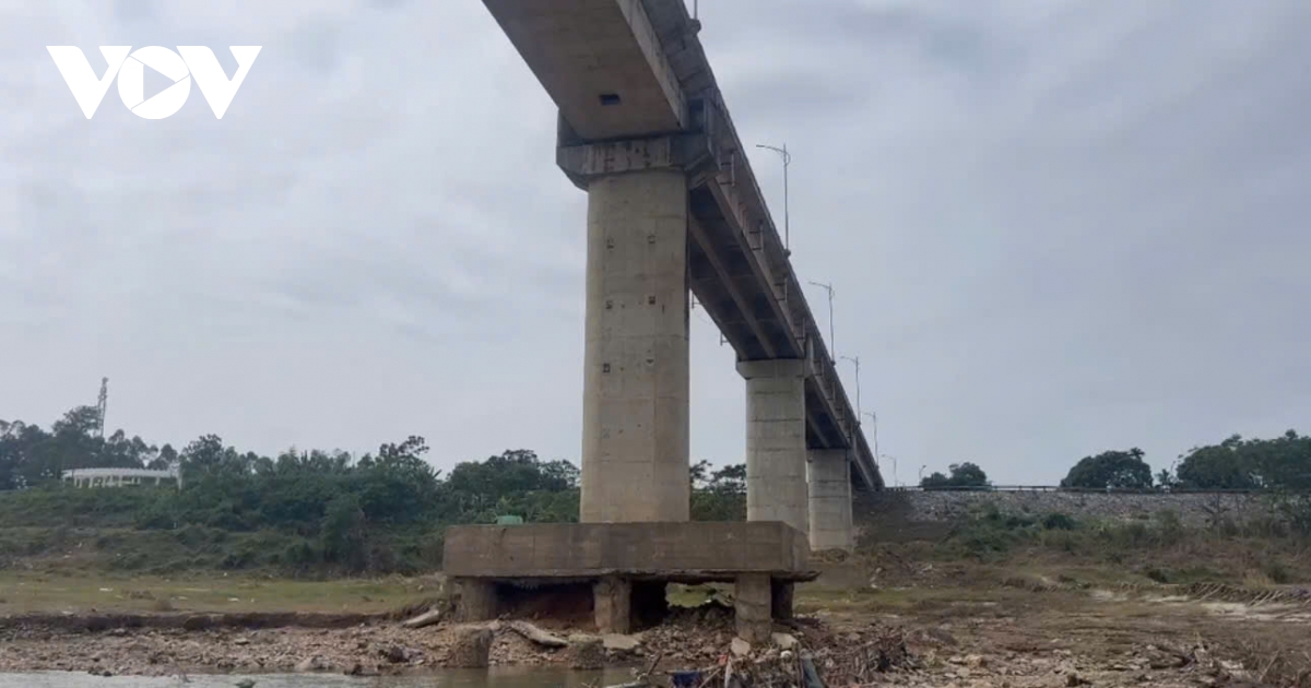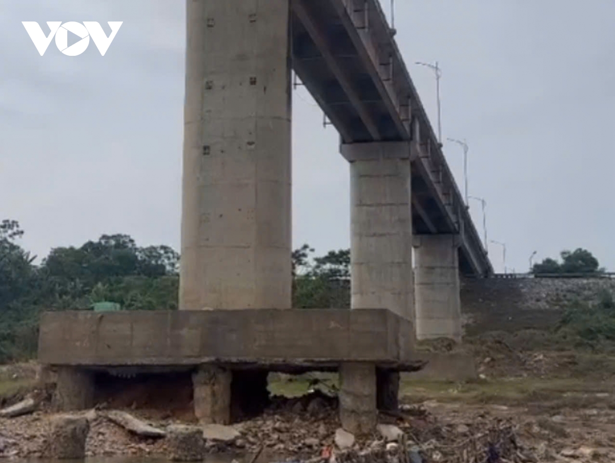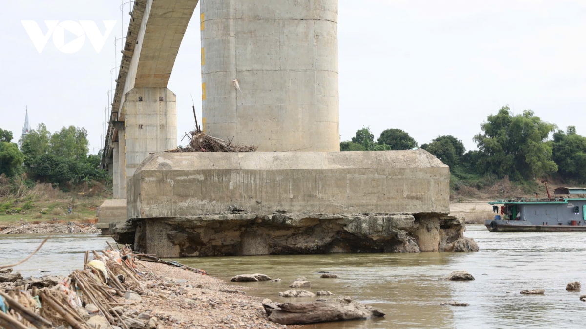 Ghi nhận trong ngày 29/10, mực nước sông qua khu vực cầu sông Lô thấp, lộ rõ hàng loạt móng cọc các trụ cầu. Đặc biệt, tại khu vực trụ T3, phần đất nền bị xói mòn tạo ra một hốc lớn cao khoảng 2m (từ đế móng đến đất nền). Trong đó có một móng cọc lộ ra cốt thép rỉ sét, mất hoàn toàn lớp bê tông bảo vệ.