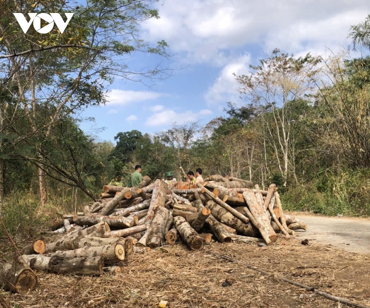 VOV.VN - Gần 600 cây gỗ thuộc rừng vành đai biên giới huyện Tuy Đức, tỉnh Đắk Nông bị khai thác trái phép trước Tết nguyên đán. UBND tỉnh Đắk Nông chỉ đạo các cơ quan chức năng phối hợp điều tra, xử lý nghiêm.