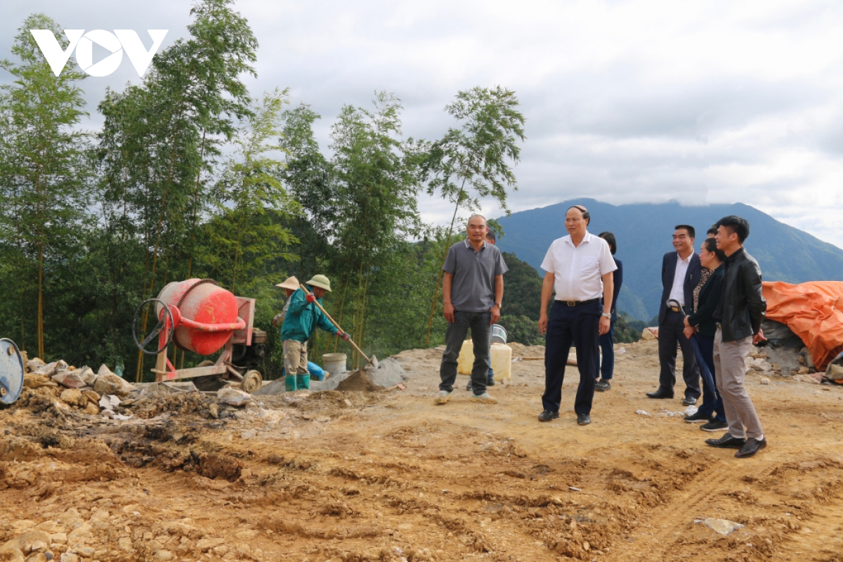 Phó Chủ tịch UBND tỉnh Cao Bằng Hoàng Văn Thạch kiểm tra tiến độ thi công Dự án bố trí dân cư vùng thiên tai tại xã Tĩnh Túc