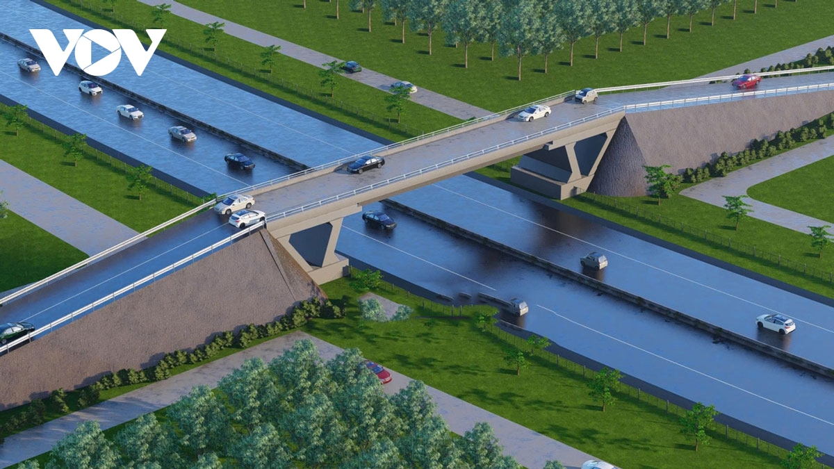 Phối cảnh đường gom và cầu vượt ngang đoạn qua tỉnh Bình Phước cũ của Dự án đầu tư xây dựng đường cao tốc Bắc - Nam phía Tây (ảnh: Báo Đồng Nai).