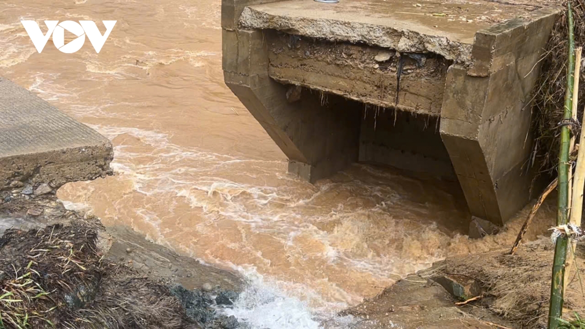 Một số hình ảnh cầu Nước Bao ở Quảng Ngãi bị lũ cuốn mố cầu: