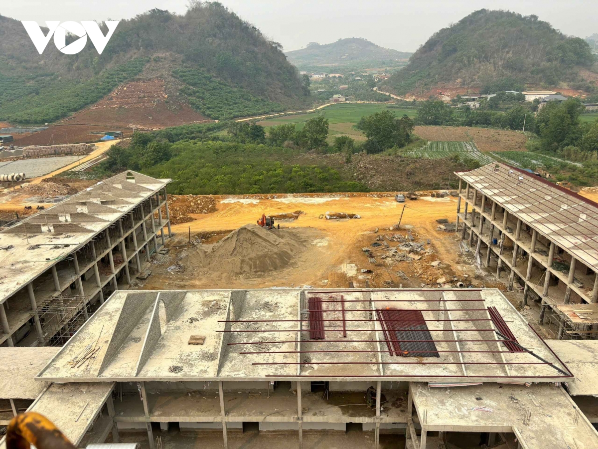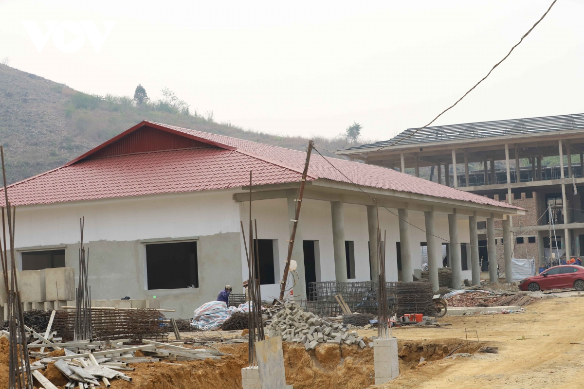 Tại xã Yên Sơn, các hạng mục nhà điều hành và khu lớp học đã cơ bản định hình, tạo nên diện mạo mới giữa vùng biên còn nhiều khó khăn.