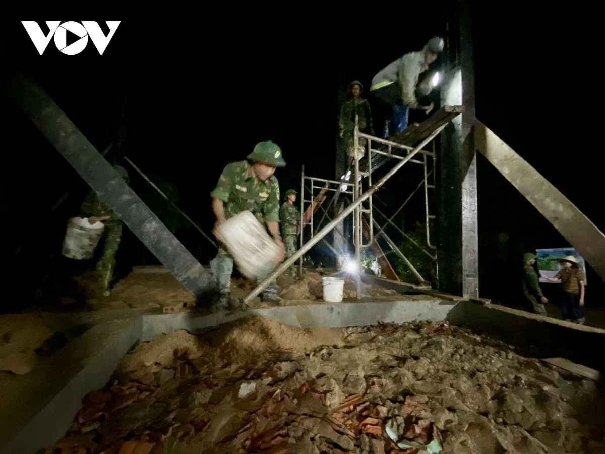 Trong đêm tối, lất phất mưa, cán bộ, chiến sĩ Sư đoàn 315 (Quân khu 5) miệt mài dựng lại nhà giúp nhân dân vùng lũ thôn Phú Hữu, xã Hoà Thịnh, tỉnh Đắk Lắk (huyện Tây Hoà, tỉnh Phú Yên cũ).