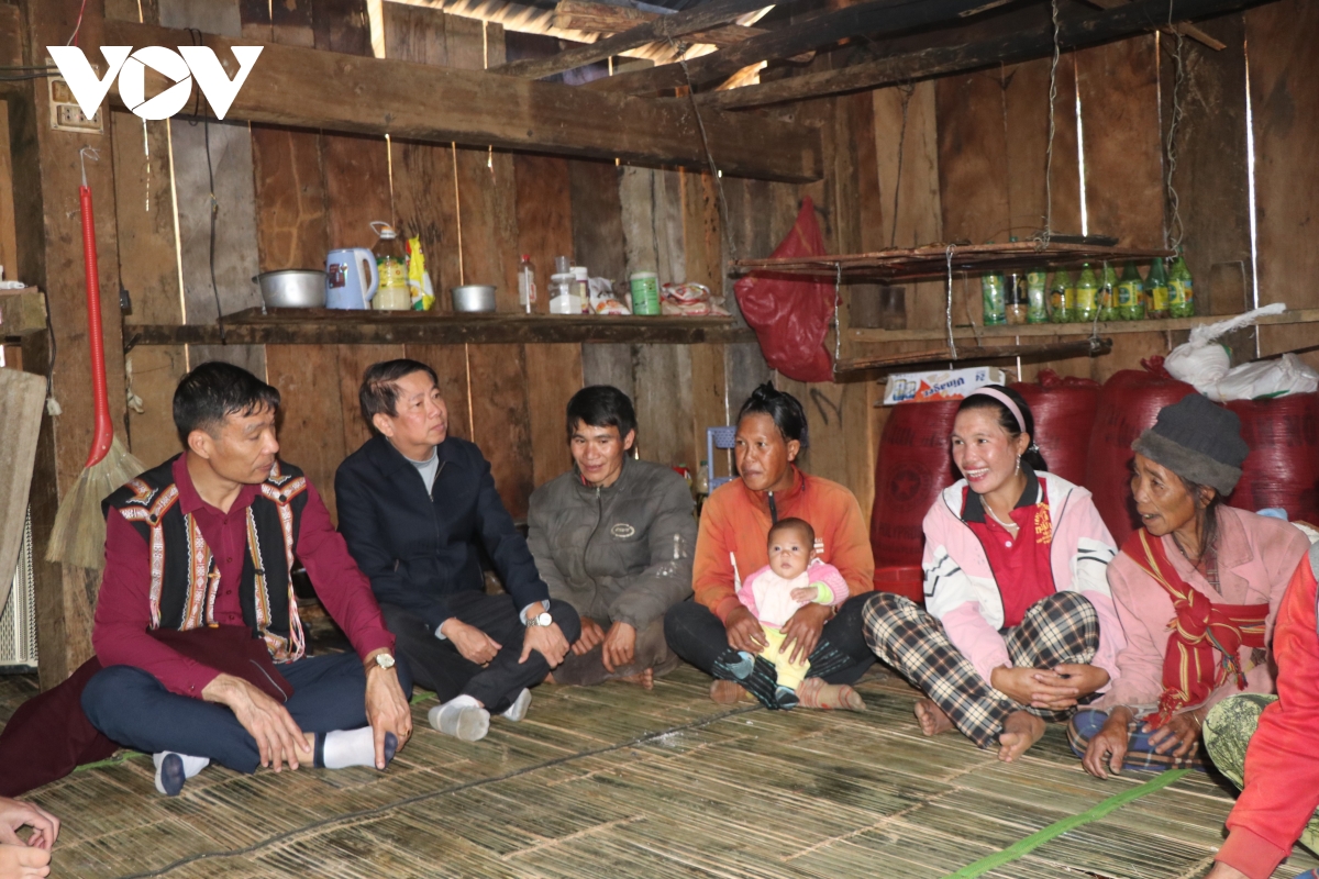 Cán bộ xã Măng Ri xuống động viên người dân vùng tái định cư.