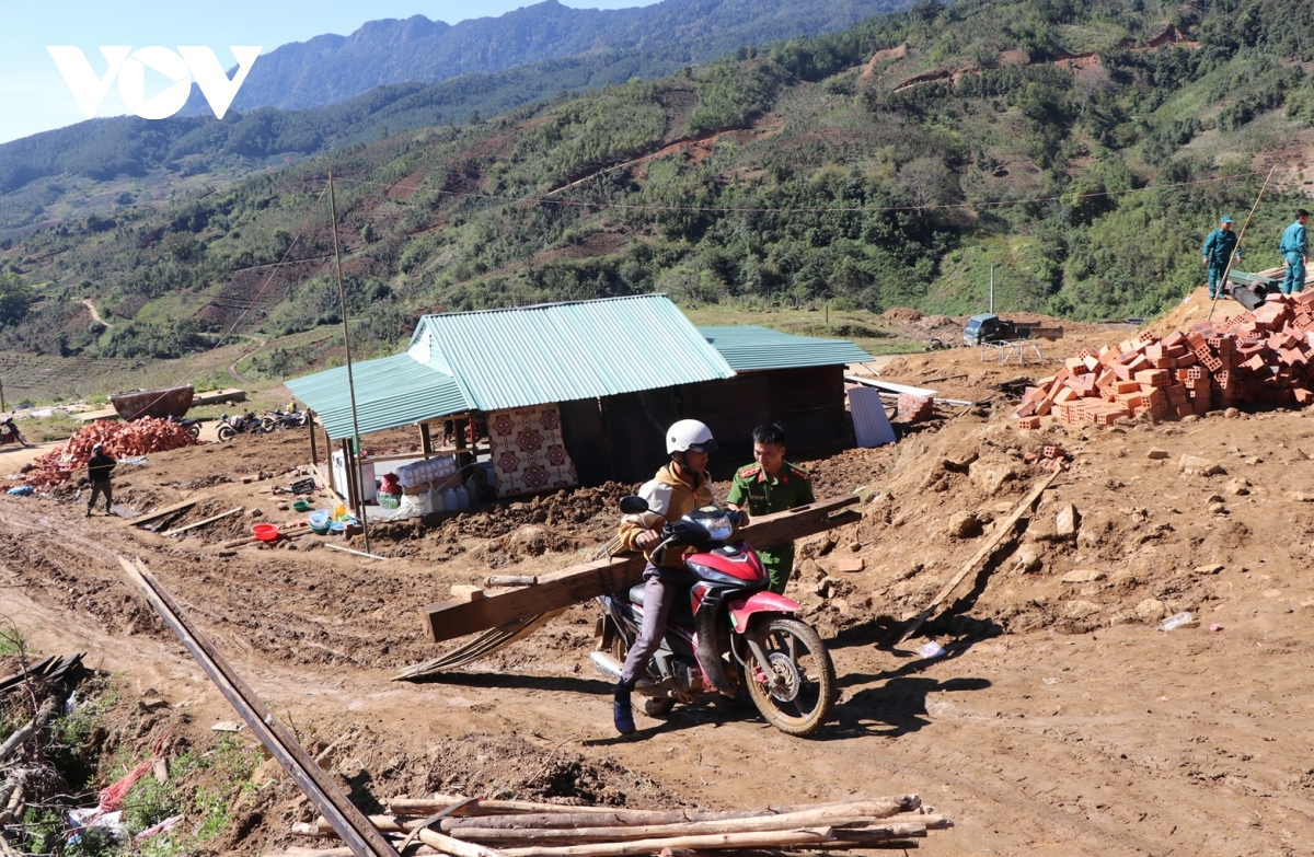Không chỉ tại thôn Tân Ba, những ngày cuối năm, tại thôn Chung Tam, chính quyền và các lực lượng chức năng xã Măng Ri tranh thủ thời tiết khô ráo cùng người dân di dời 78 căn nhà ở khu vực có nguy cơ sạt lở cao để dựng nhà tại nơi ở mới an toàn. Trên các công trường nhỏ giữa núi rừng, không khí thi công diễn ra khẩn trương. Tiếng máy trộn hồ, tiếng xẻng, tiếng búa vang đều từ sáng sớm đến chiều muộn.
