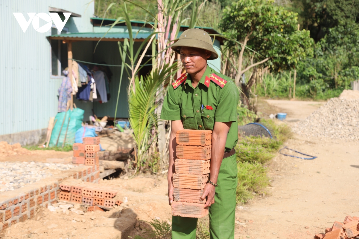 Ông A Hiệp cho biết, Ủy ban Mặt trận Tổ quốc tỉnh Quảng Ngãi hỗ trợ 60 triệu đồng, gia đình đóng góp thêm 40 triệu đồng để dựng căn nhà mới. Lực lượng công an hỗ trợ thuê nhà thầu thi công, giám sát công trình, đồng thời cử cán bộ, chiến sĩ tham gia phụ hồ, vận chuyển vật liệu, góp phần đẩy nhanh tiến độ.