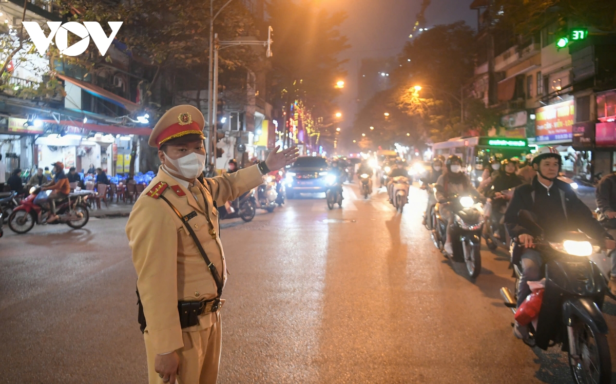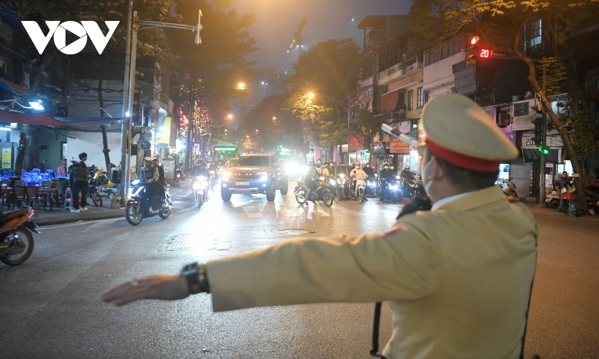VOV.VN - Để đảm bảo an toàn đêm Giao thừa, lực lượng CSGT đã được triển khai trên tất cả các nẻo đường Thủ đô, đồng thời huy động các lực lượng phối hợp, hỗ trợ lực lượng tổ chức trực ban, tuần tra khép kín 24/24 “xuyên đêm, xuyên tết”.