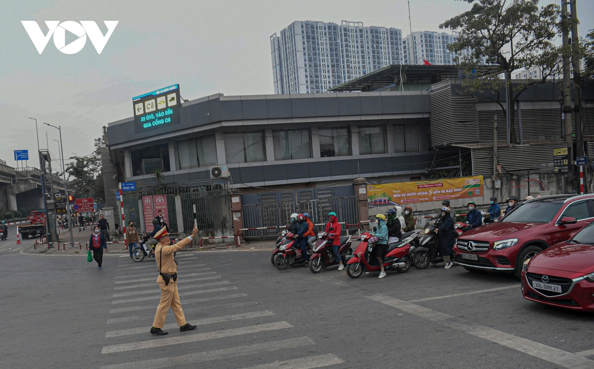 Đại úy Lê Văn Nghiệp làm nhiệm vụ ở nút giao cạnh bến xe Nước Ngầm