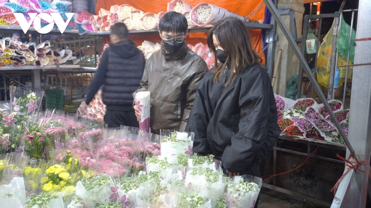 VOV.VN - Chợ Quảng An là chợ hoa đầu mối lớn nhất Hà Nội. Sát ngày Quốc tế phụ nữ 8/3, từ tối đêm đến sáng, chợ luôn tấp nập người mua kẻ, bán, phục vụ nhu cầu tăng cao của người dân.