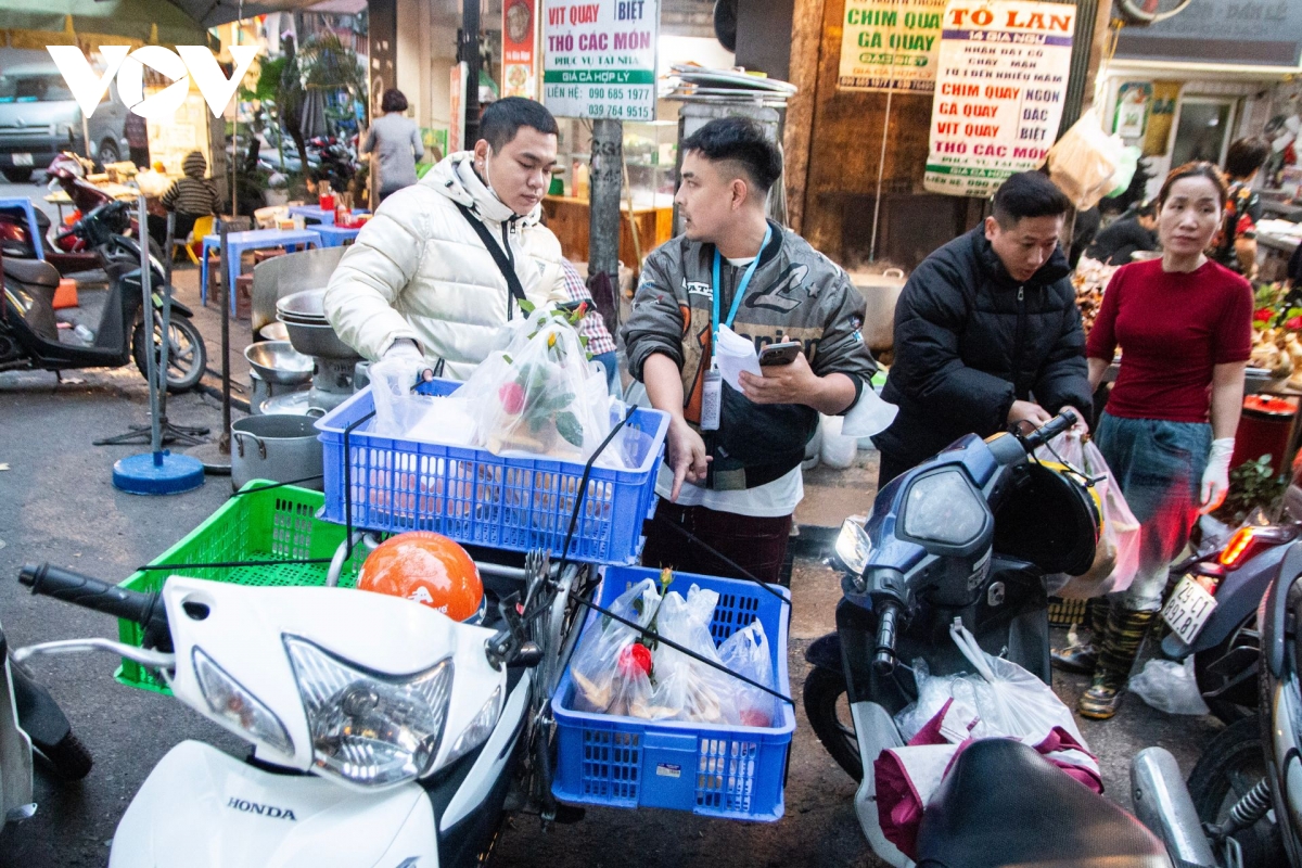 Cùng với sự phát triển của thời đại 4.0, nhiều mặt hàng đồ cúng tại đây cũng được rao bán trên các nền tảng mạng xã hội. Vì vậy, trong những ngày này, các anh shipper phải chạy hết công suất để kịp giao hàng cho khách. Những thúng hàng được sắp đầy đồ lễ, chuẩn bị chuyển đi phục vụ tận tay khách hàng.