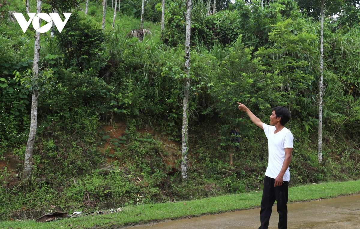 Người dân khu dân cư Hà Tăng, thôn Gò Lã, xã Sơn Tây, tỉnh Quảng Ngãi lo lắng nguy cơ sạt lở núi.