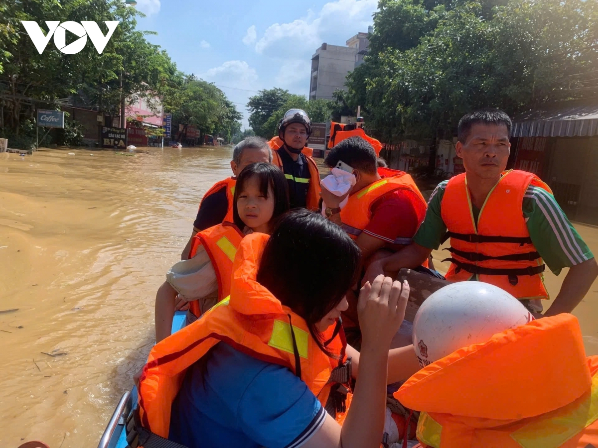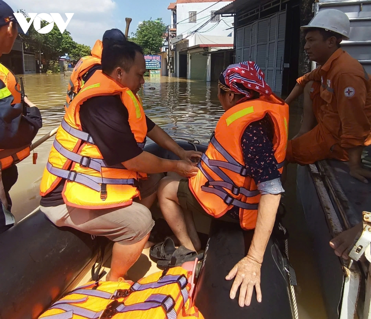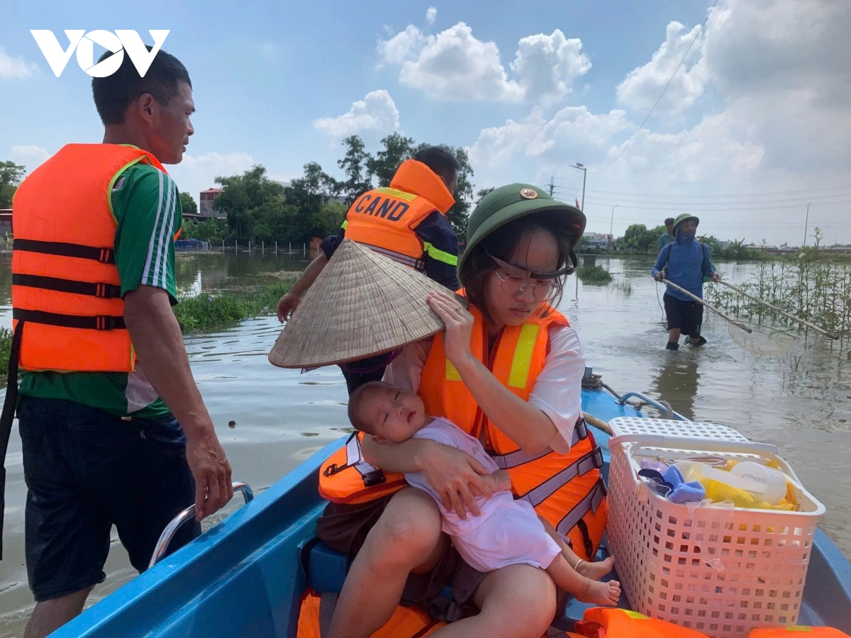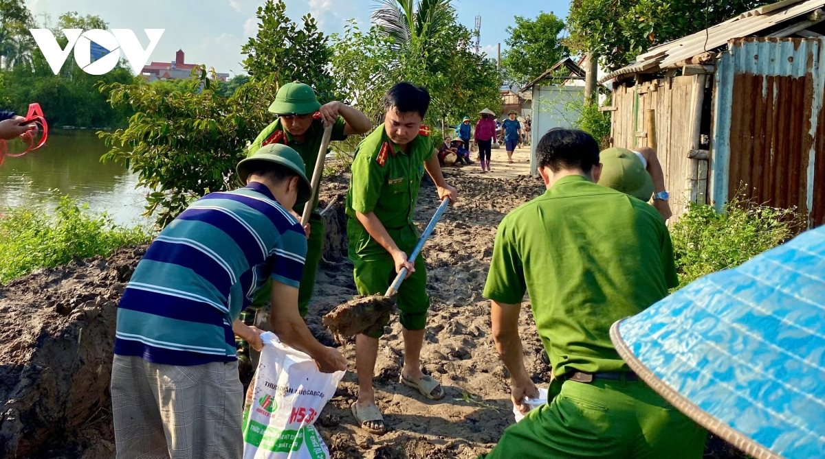 VOV.VN - Công an TP Hà Nội huy động tối đa lực lượng, nhanh chóng triển khai phương tiện để hỗ trợ chính quyền, nhân dân địa phương khắc phục hậu quả do mưa lũ.
