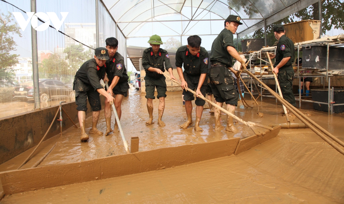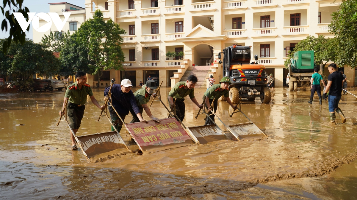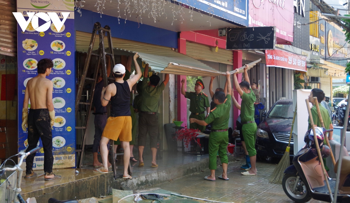 Công tác dọn dẹp gặp nhiều khó khăn do khối lượng bùn đất đọng lại rất dày, tạo thành từng lớp lầy lội và khối lượng rác thải đọng lại rất nhiều và bao phủ trên diện rộng. Tuy nhiên, với tinh thần trách nhiệm, các cán bộ, chiến sĩ công an vẫn nỗ lực, không quản vất vả, căng mình góp sức để cuộc sống sớm trở lại bình thường. Một số cán bộ, chiến sĩ Công an tỉnh Thái Nguyên còn giúp các hộ dân tháo dỡ nhà cửa, vật dụng bị hỏng do dòng nước mạnh, chảy xiết để tránh nguy cơ gây nguy hiểm.