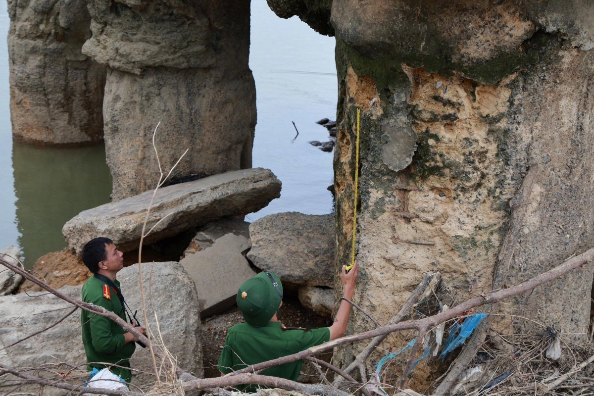 Trung tâm Kỹ thuật đường bộ đã tiến hành kiểm tra tình trạng kỹ thuật của tất cả các móng mố, trụ cầu thông qua đo dao động và kiểm tra chiều sâu xói của trụ T5 sau cơn bão số 11. Để đánh giá chuyển vị động của mố, trụ cầu, đơn vị đã sử dụng xe tải 2 trục có tổng tải trọng của xe và hàng là 13 tấn để đo dao động và chuyển vị của nhiều mố, trụ cầu và phân tích đồ thị dao động. Kết quả cho thấy, tình trạng của mố trụ đảm bảo với tải trọng xe thử này. Ngoài ra, báo cáo cũng nêu tình trạng lòng sông tại trụ T5 đã xói đến lớp đá vôi và không xói sâu thêm từ thời điểm tiến hành khảo sát năm ngoái.