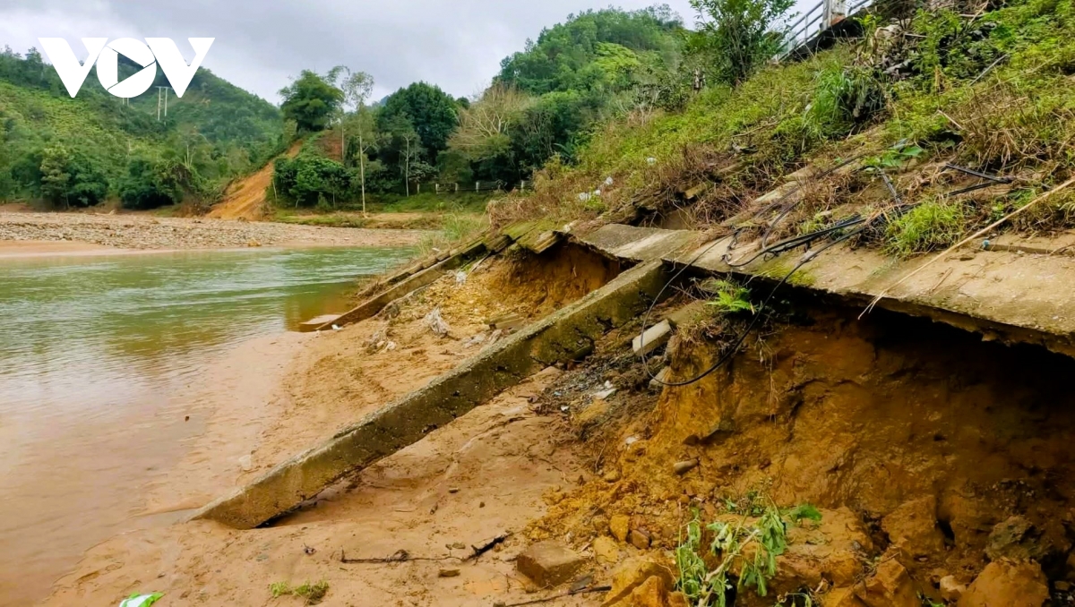 Mưa lũ đã làm sạt lở đất đá tại các mái taluy, vùi lấp và hư hỏng một số hạng mục như hộ lan mềm, cọc tiêu biển báo; đồng thời làm đổ trụ điện, đứt dây điện gây mất điện diện rộng. Tình trạng này ảnh hưởng đến giao thông đi lại và làm gián đoạn nguồn cung cấp nhu yếu phẩm cho người dân tại các thôn, bản trên địa bàn xã.