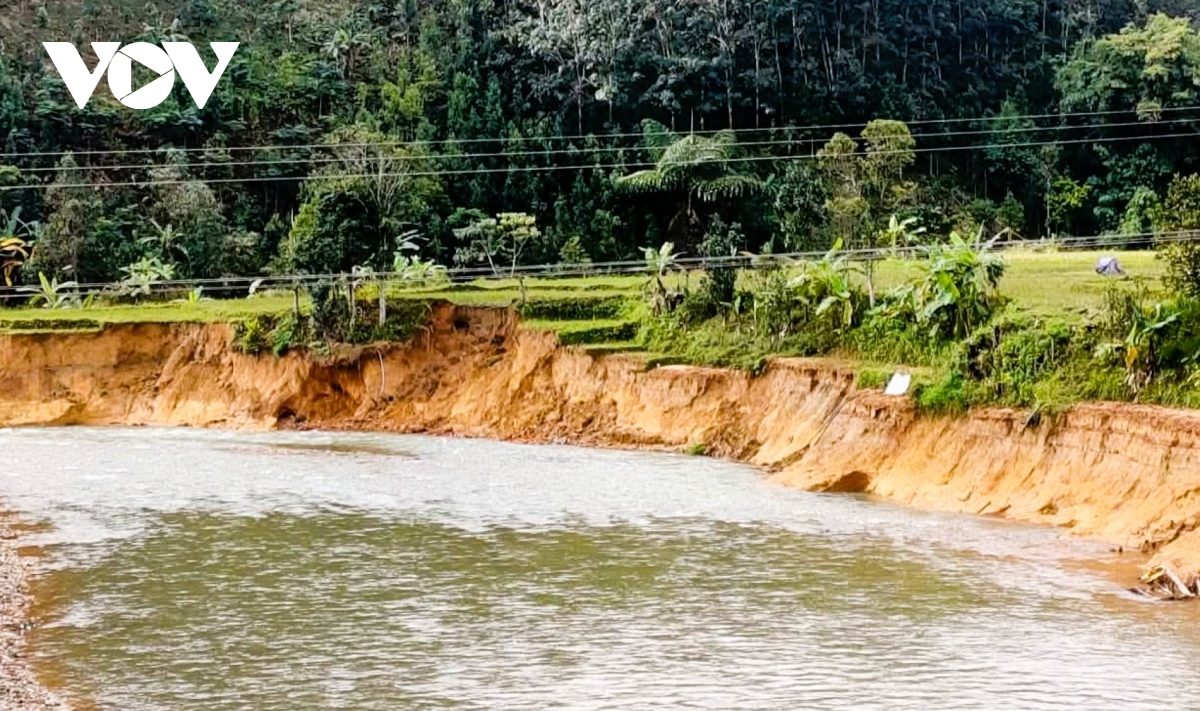 Qua kiểm tra thực tế, lực lượng chức năng xác định tình trạng sạt lở bờ sông, thay đổi dòng chảy đang gây xói lở diện tích đất nông nghiệp, đặc biệt là đất lúa nước, tiềm ẩn nguy cơ ảnh hưởng đến trụ sở UBND xã và khu dân cư tại trung tâm hành chính xã A Vương.