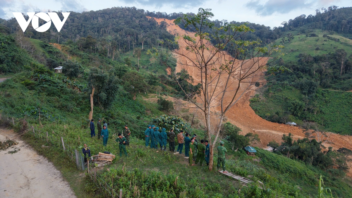 Hiện trường liên tục xuất hiện sạt trượt mới, đất đá từ trên núi tiếp tục đổ xuống, lực lượng chức năng buộc phải sử dụng flycam khảo sát từ xa, tạm thời chưa thể đưa người vào khu vực sạt lở để đảm bảo an toàn.