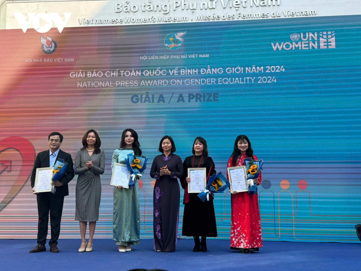 Sáng nay (18/12), tại Hà Nội, Trung ương Hội Liên hiệp Phụ nữ (LHPN) Việt Nam và Cơ quan Liên Hợp Quốc về Bình đẳng giới và Trao quyền cho Phụ nữ (UN Women) phối hợp với Hội Nhà báo Việt Nam tổ chức Lễ trao giải Báo chí toàn quốc về Bình đẳng giới năm 2024. Ban Thời sự (VOV1), Đài TNVN giành giải A và giải C thể loại phát thanh.