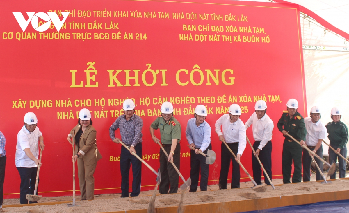 VOV.VN - Hôm nay (2/3), tại xã Ea Drông, thị xã Buôn Hồ, Ban chỉ đạo xóa nhà tạm, nhà dột nát tỉnh Đắk Lắk tổ chức khởi công xây dựng những căn nhà đầu tiên thuộc 1 trong 4 đề án xóa nhà tạm, nhà dột nát ở tỉnh.