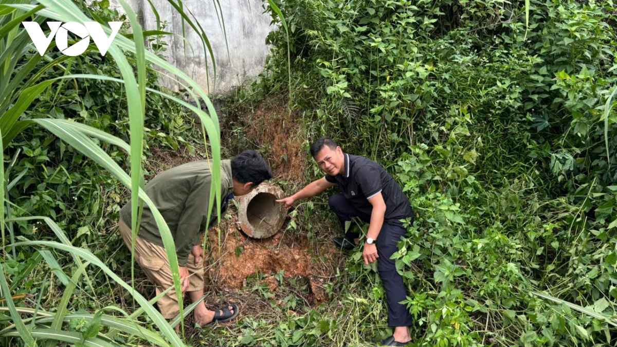 Phóng viên Báo Điện tử Tiếng nói Việt Nam được người dân dẫn đi thực địa cho thấy, giáp ranh đất nghĩa trang và phía sau trại lợn được ngăn cách bởi bức tường gạch, phía dưới tường gạch chủ trang trại lợn cho đi đường cống bê tông, đầu miệng cống về phía đất nghĩa trang. Chính vì vậy người dân tố chủ trang trại lợn lén xả chất thải.