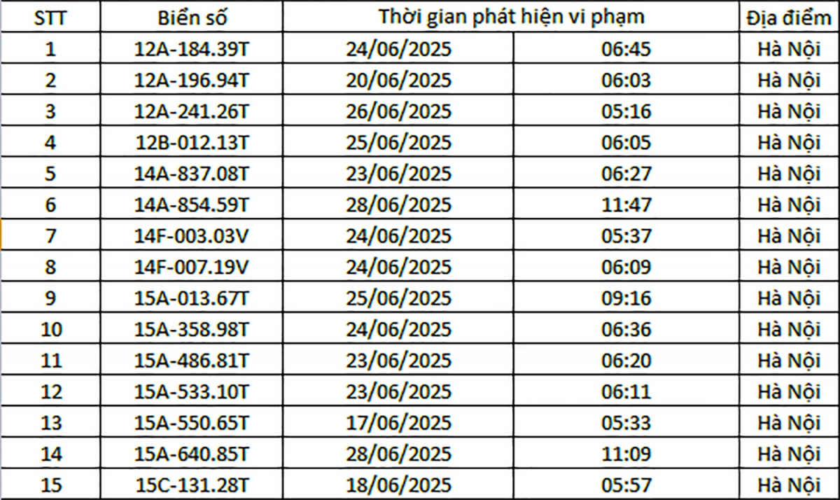 VOV.VN - Phòng Cảnh sát giao thông Công an TP Hà Nội vừa công bố danh sách phương tiện vi phạm hành chính về trật tự, an toàn giao thông đường bộ từ ngày 16/6/2025 đến ngày 30/6/2025, được ghi nhận qua hệ thống camera giám sát.