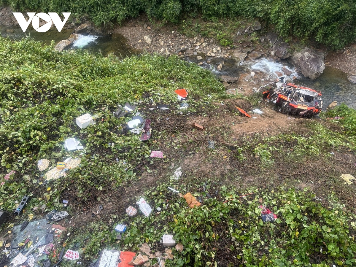 Hiện, lực lượng cứu hộ đã điều động xe cẩu lớn, đưa xe khách gặp nạn ra khỏi hiện trường, phục vụ công tác điều tra nguyên nhân tai nạn.