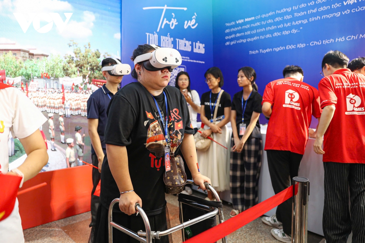 Toàn bộ bối cảnh Quảng trường Ba Đình năm 1945 được phục dựng tỉ mỉ bằng công nghệ 3D. Với kính VR hiện đại, người tham gia có thể tự do di chuyển trong không gian ảo, hòa mình vào dòng người năm xưa, vỡ òa trong tiếng vỗ tay và tiếng hò reo của hàng vạn đồng bào.